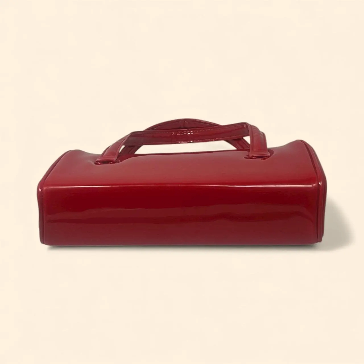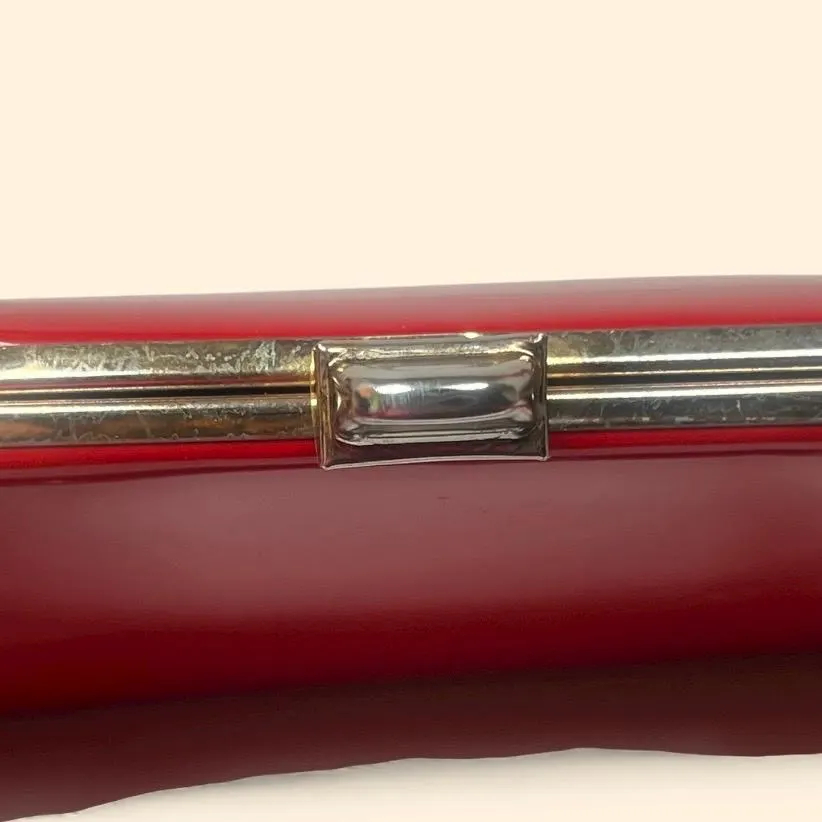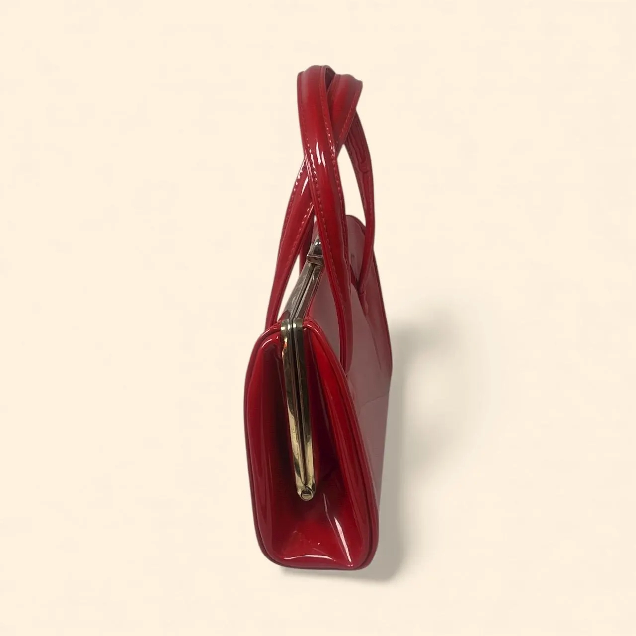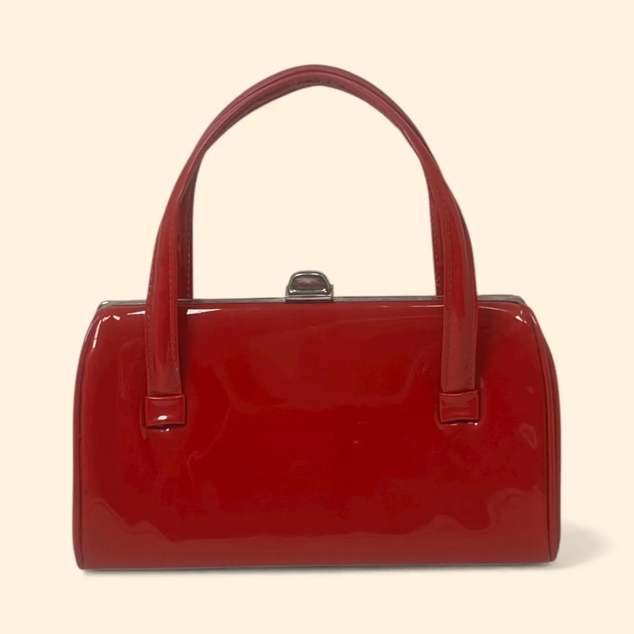 A classic vintage-inspired handbag in a rich glossy red patent finish, designed with a structured silhouette and a sleek frame-top closure. The double top handles create an elegant, ladylike look that’s perfect for day-to-night styling—ideal for dates, dinners, parties, and retro outfits.